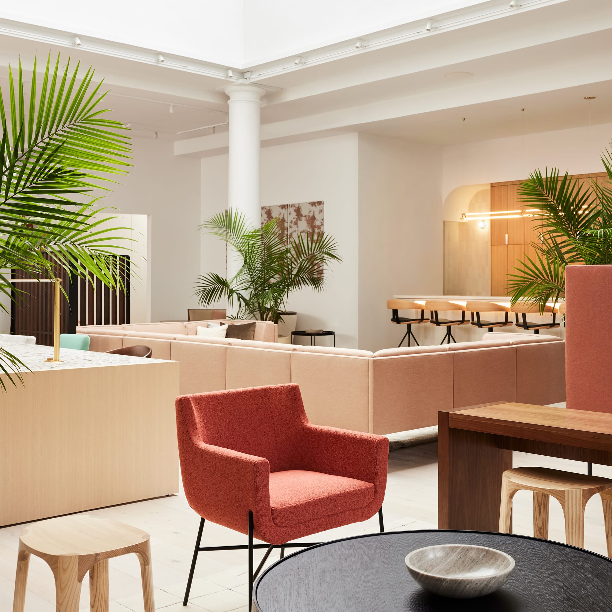 The HBF showroom in New York has been beautifully reimagined for a new season, bringing together Barbara Barry's iconic designs, the innovative Firma table, and the modernity of Juniper's lighting.