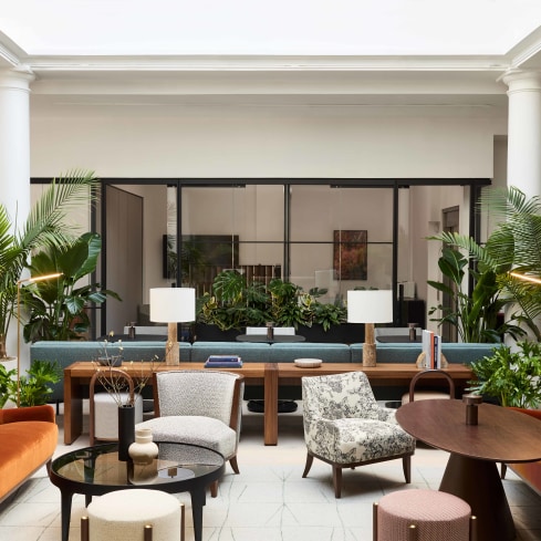 $4,085.00 LIST + UPWith a wink and a nod to French design visionary Charlotte Perriand, Barbara Barry created the Charlotte Lounge Series for HBF. Shaped with a high back and wrapping the body in a gentle arc, this graceful seating collection brings an attitude for versatility and functionality to modern contract design settings such as hotels, lobbies, and office amenities spaces. The exposed wood frame option outlines the seating’s elegant profile, and further emphasizes its architectural lines without sacrificing comfort and style.