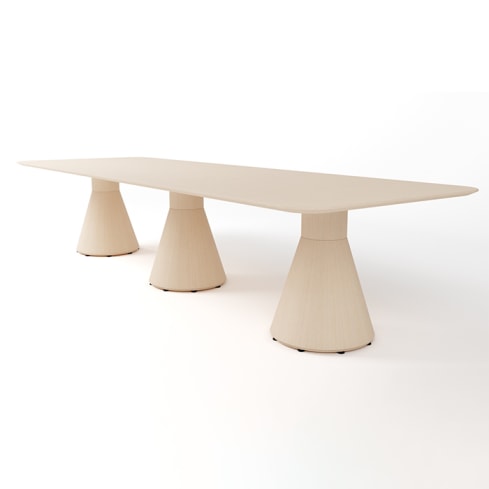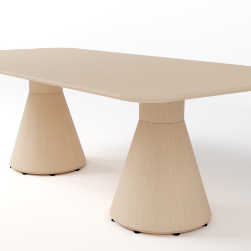 Torre’s shape is inspired by a simple cake platter: a curved top with a column standing below that gently narrows towards the center and widens towards the base. Designed by HBF’s in-house team, Torre is an expertly crafted solid wood conference table that supports the demands of today’s modern technologies. Its clean look makes it particularly flexible in design-forward workplaces as well as hospitality settings and beyond.